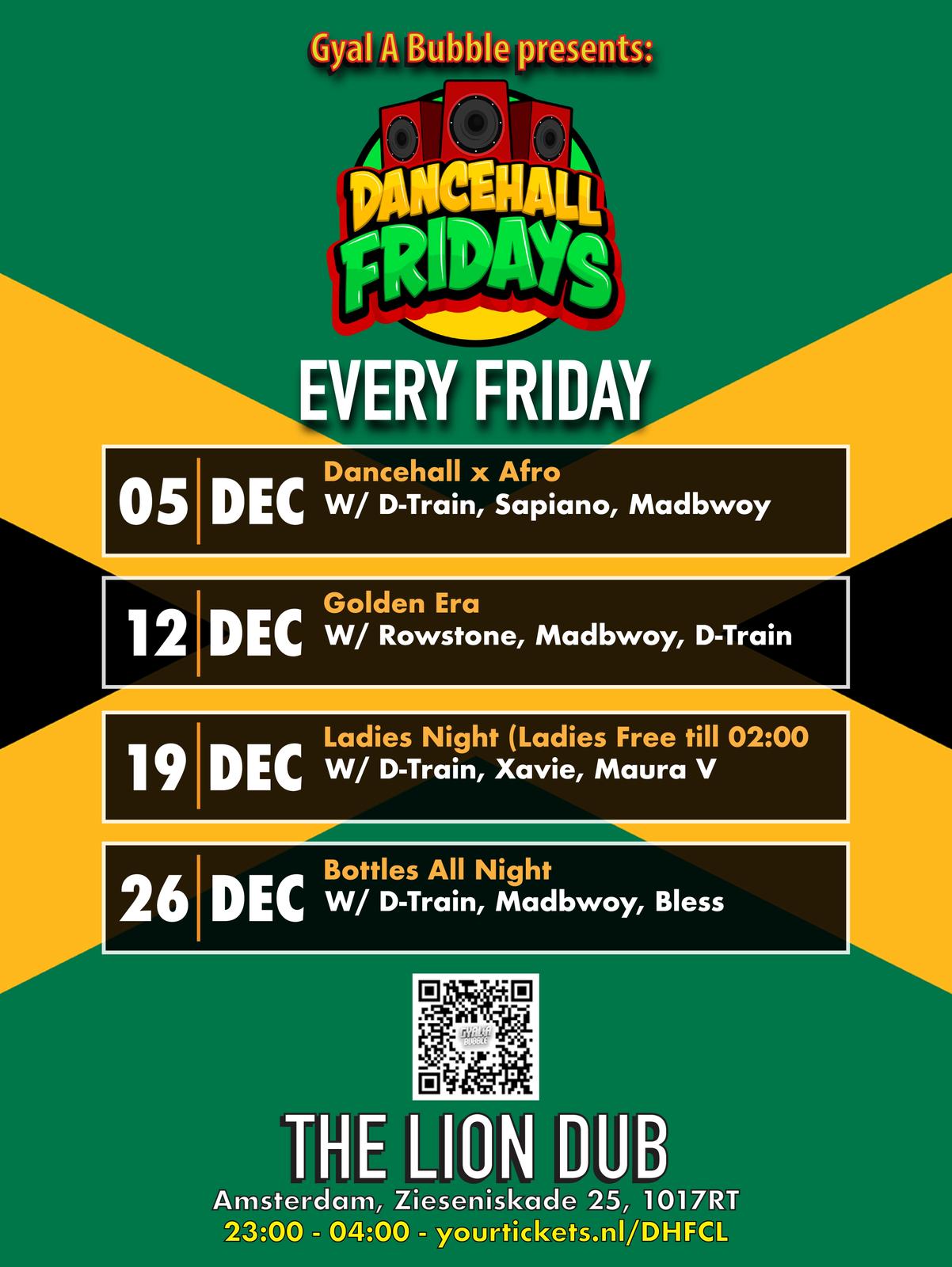 🎉 Dancehall Fridays – Elke Vrijdag bij Club Lion Amsterdam! 🎉 Amsterdam, juli 2025 – Dancehall Fridays is dé wekelijkse party waar de temperatuur stijgt en de vibes tropisch zijn. Elke vrijdagavond verandert The Lion-dub, naast het bruisende Leidseplein, in een dansvloer vol energie, riddims en good vibes. Laat je meevoeren door de heetste dancehall & reggae – gebracht door de beste DJ’s van de stad. 📍 The Lion-dub – Zieseniskade 25, 1017 RT Amsterdam 📅 Elke vrijdag 🕘 Start: 23:00 | Eind: 04:00 🎶 Dancehall | Reggae 🔥 Kom dansen. Kom genieten. Kom leven. Dancehall Fridays – Home Of Dancehall & Reggae in Amsterdam
